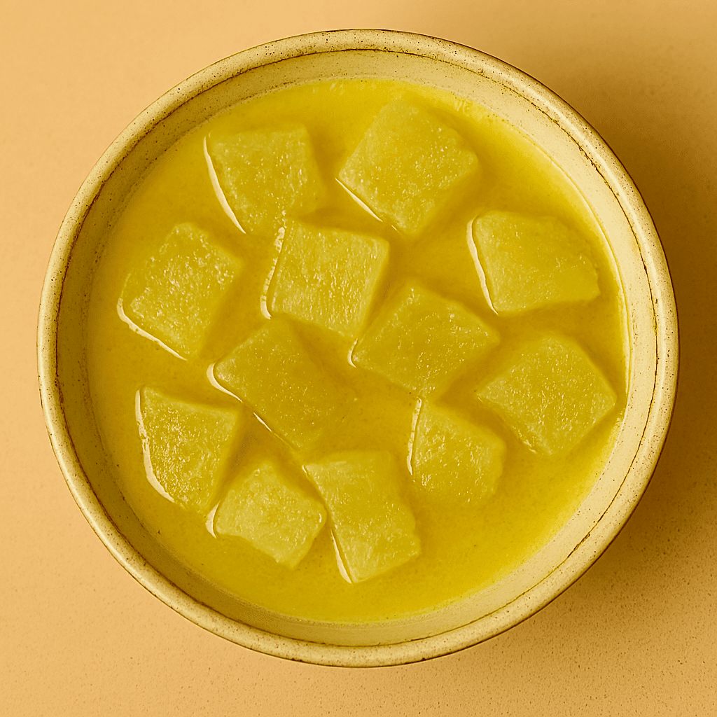 ◦ Boil ash gourd or colocasia until soft. If using okra, sauté until lightly crisp.