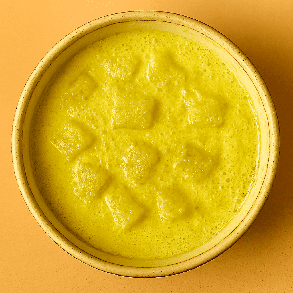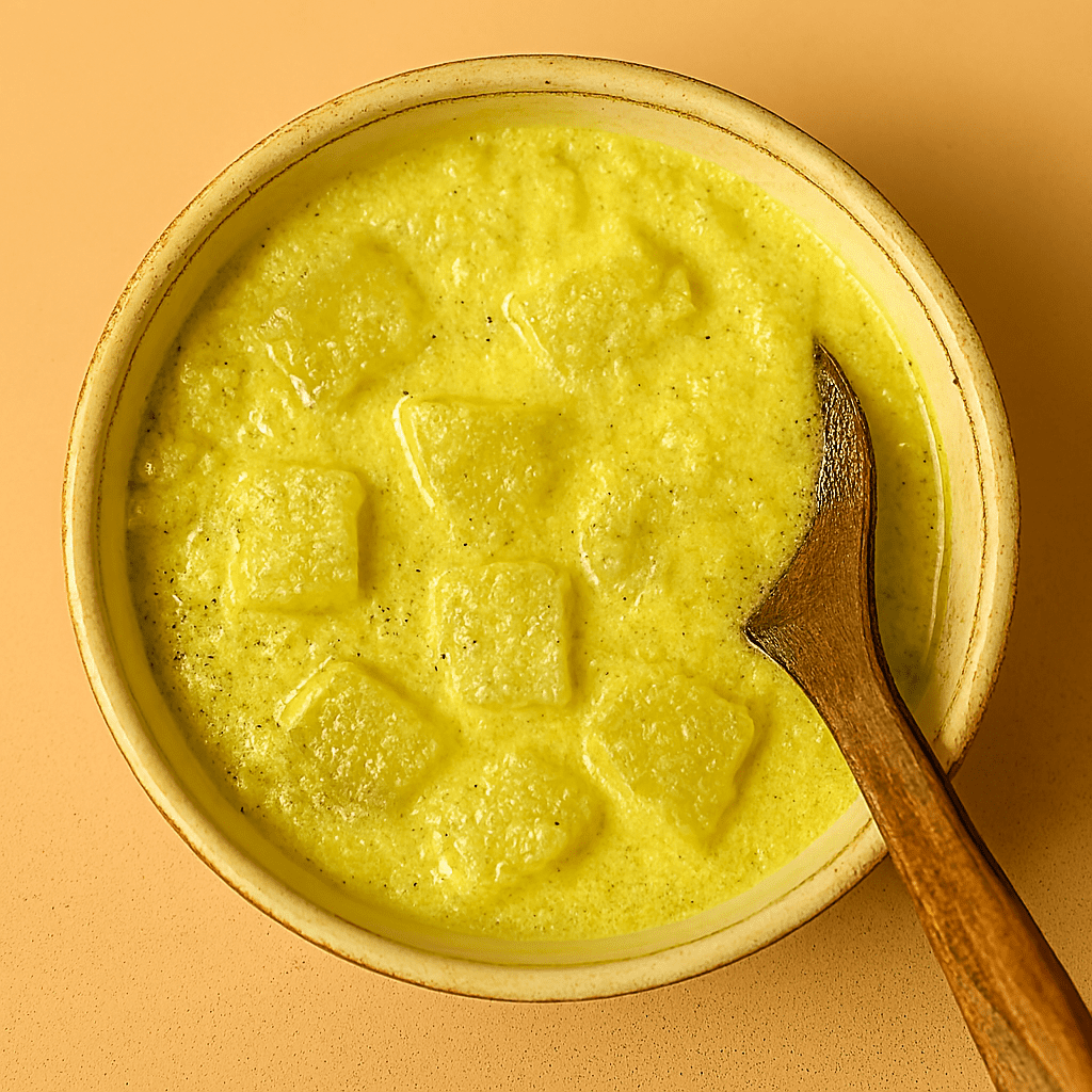◦ Add cooked vegetables to the curd mixture. Heat on low flame—do not boil. Stir gently until warm and slightly thickened.