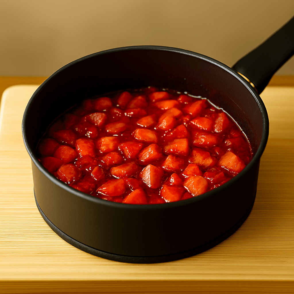 ◦ Simmer halved strawberries with sugar and lemon juice for 5–7 minutes.