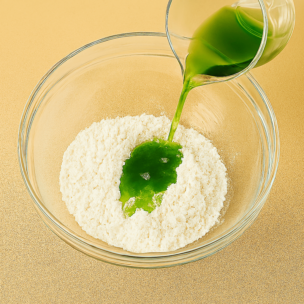 ◦ Mix glutinous rice flour, pandan juice, water, and salt.