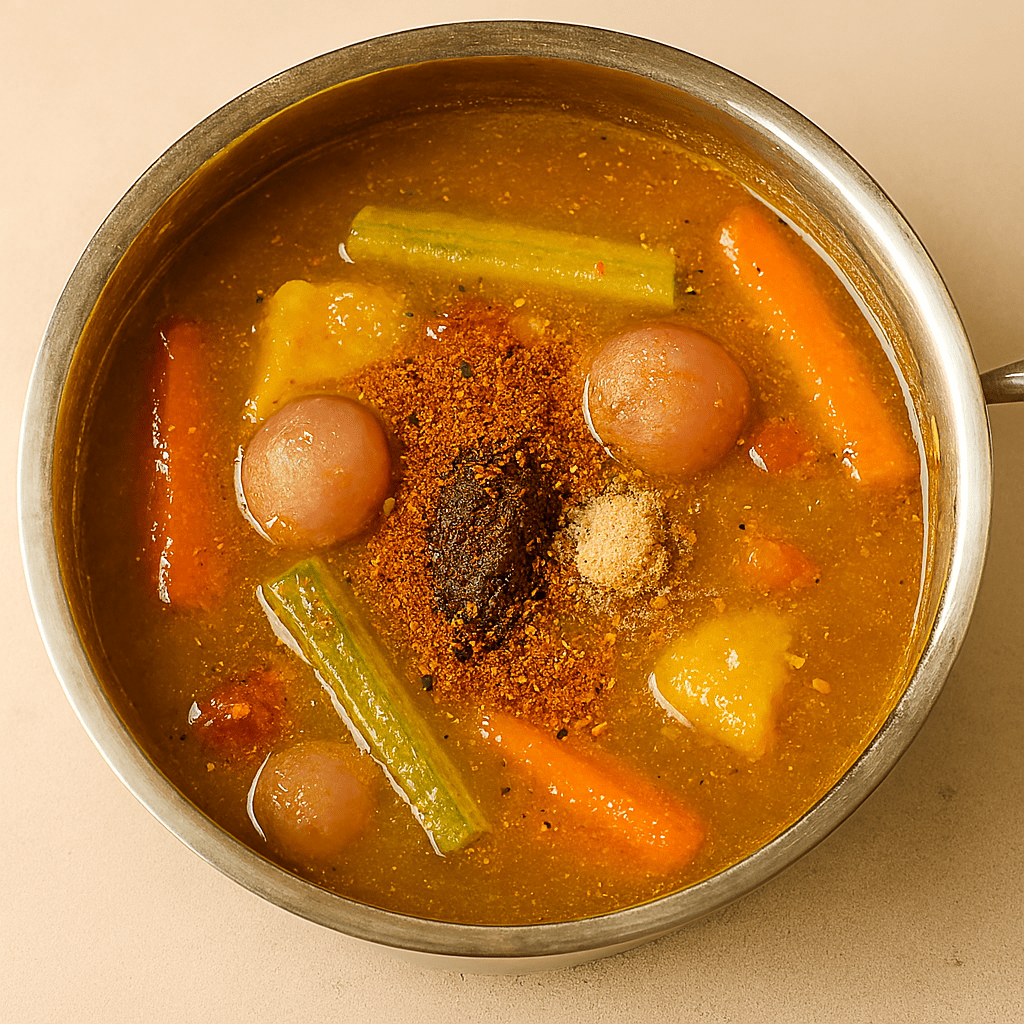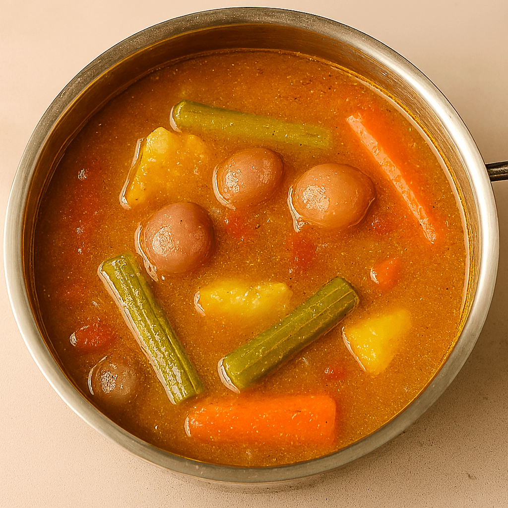 ◦ In a pot, boil drumstick, carrot, pumpkin, and shallots until tender.