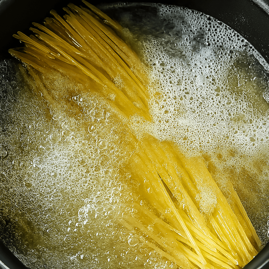 ◦ Cook spaghetti in salted boiling water until al dente. Reserve 1 cup of pasta water