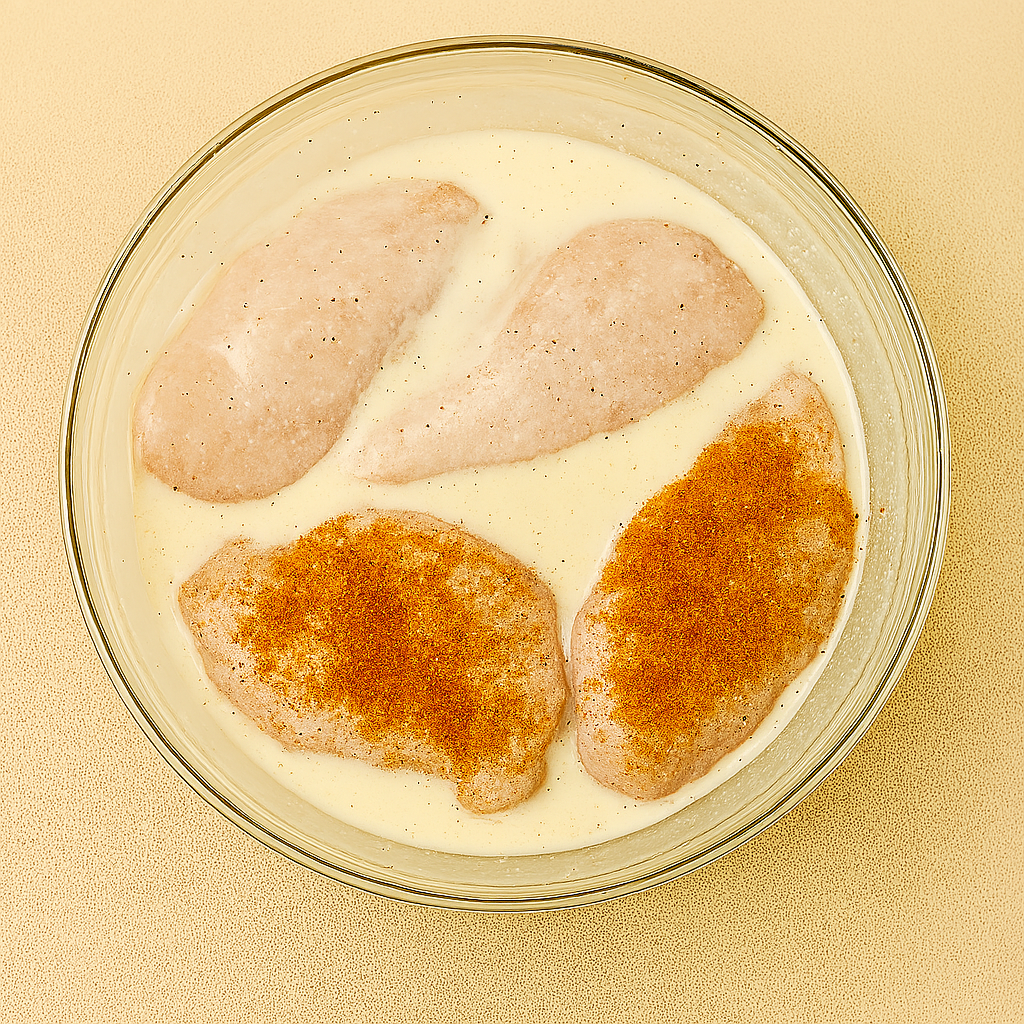 ◦ Add chicken fillets and marinate for 1–2 hours.