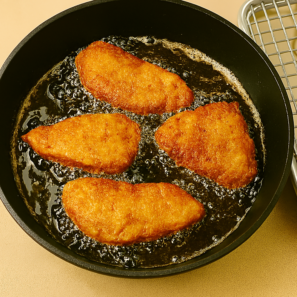 ◦ Fry chicken fillets until golden and cooked through (about 4–5 minutes per side).