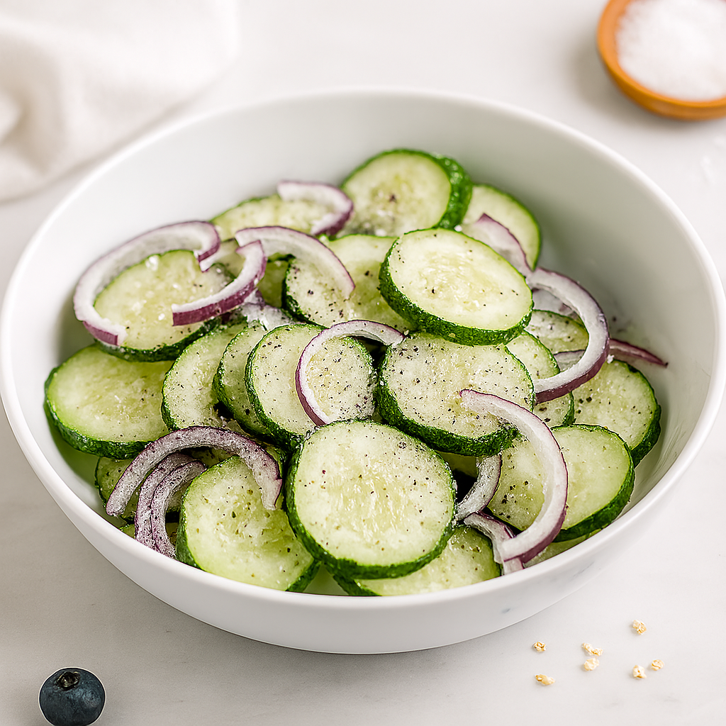 ◦ Slice cucumbers thinly and sprinkle with a pinch of salt.