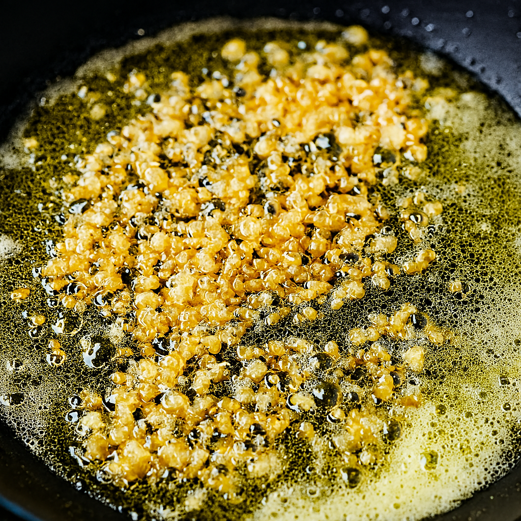 ◦ Add the sliced garlic and sauté, stirring constantly, until golden and crisp. Remove and drain on paper towels.
