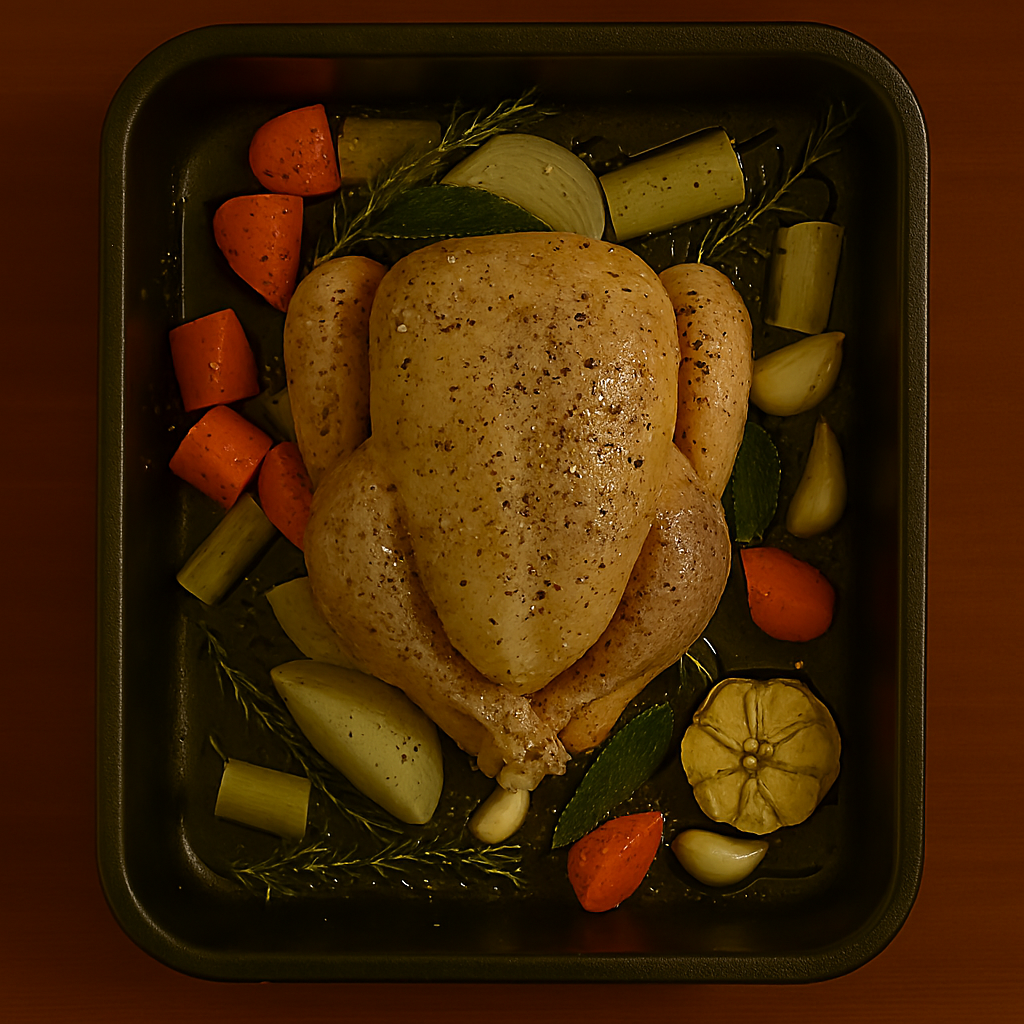 1. Remove chicken from fridge 30 minutes before cooking. Preheat oven to 240°C (475°F).