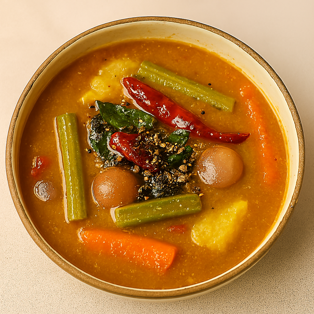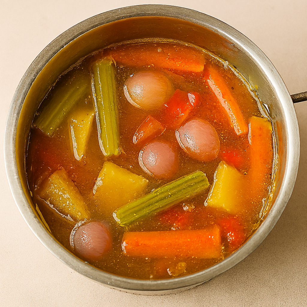 ◦ In a pot, boil drumstick, carrot, pumpkin, and shallots until tender.
